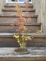 These have been sitting on beds of pumice. I originally had the red maple siting in sand , but the roots started to escape and the tree responded well but due to how small the pot is , I fear that it will become more reliant on the escaped roots than the roots in the pot. I’m going to cut that apex off either this year or next and cut down again to next set of foliage depending how well it does remainder of growing season into late September/ early October