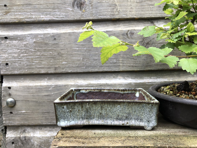 I'll repot into a smaller pot in spring 2020 - probably this little Erin rectangle - and continue work on the branching.